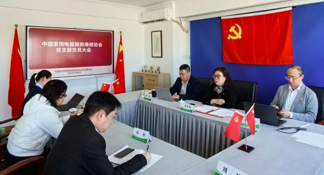 2025年3月6日,中国家用电器服务维修协会党支部党员大会在京召开。中服协第六届党支部书记刘秀敏同志、副书记兼组织委员周平同志、宣传委员兼纪检委员王岩同志以及刘文杰、赵捷、刘松、刘静、王倩8名党员同志出席会议。书记刘秀敏同志主持会议。